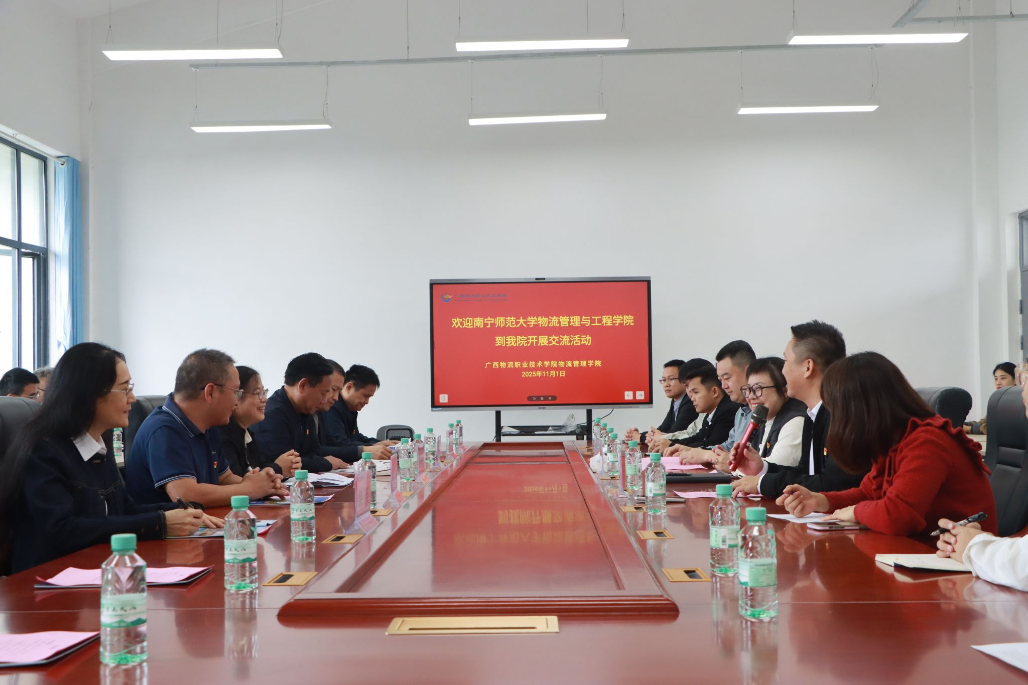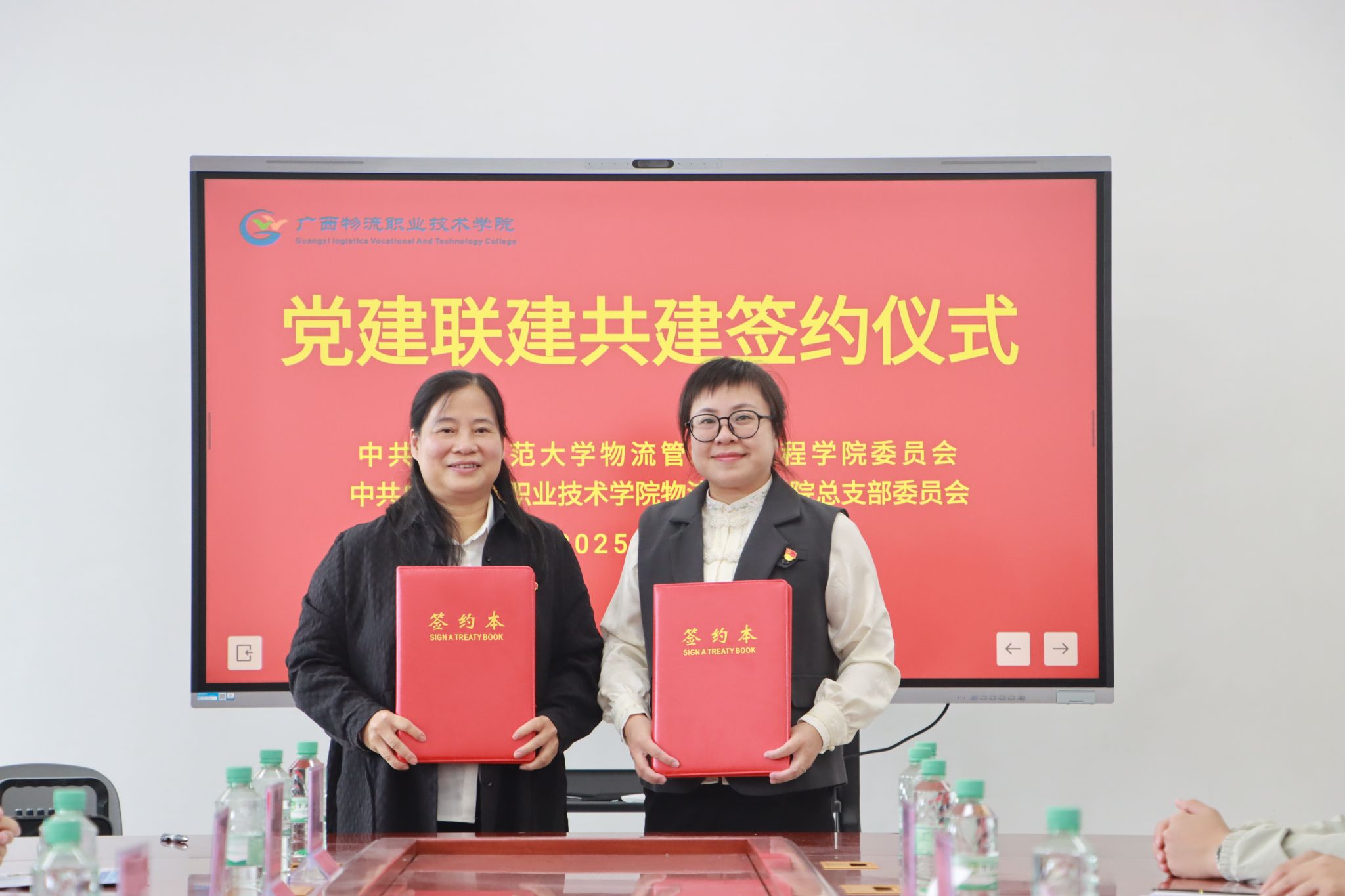 活动首站,物流管理与工程学院抵达广西物流职业技术学院物流管理学院,开展党建共建活动。学院教师先后参观对方学院党建品牌文化墙、党员活动室及物流实训室,深入了解“党建引领 物流先锋”的特色模式。在座谈会上,双方围绕党建与业务深度融合展开热烈交流,分享“党建+实训教学”“党建+校企合作”等方面的创新实践,并共同签署党建共建协议书,约定在组织联建、理论联学、资源联享、发展联促、服务联动等方面开展深度合作,构建党建引领高质量发展的新格局。