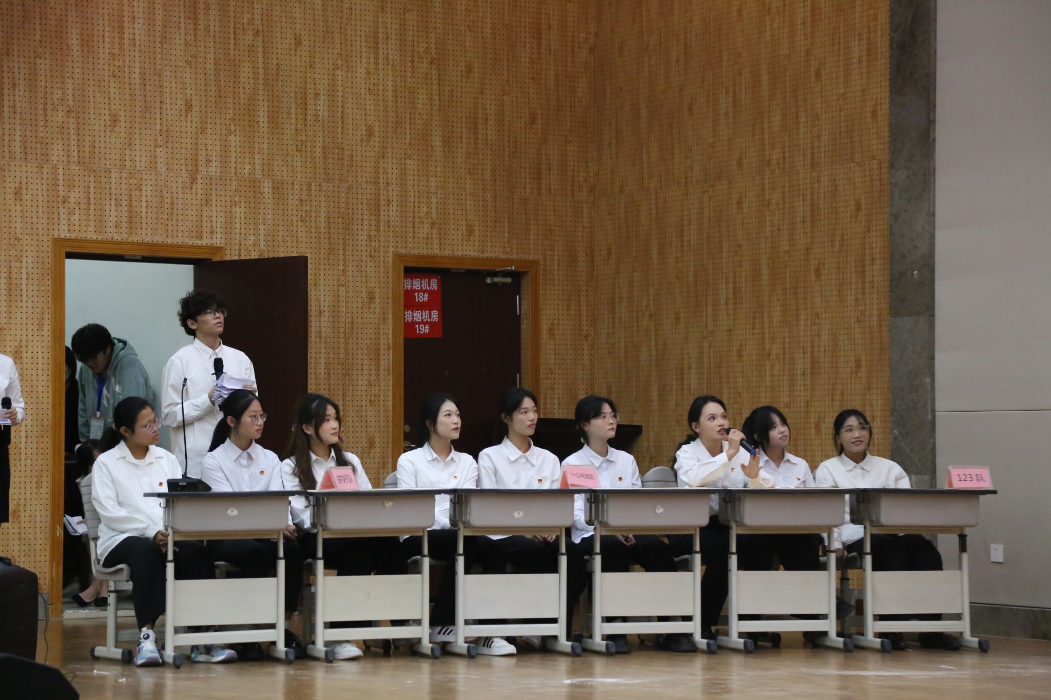 学院党委书记陈兵、党委副书记黄宇、教师代表及各班级学生代表出席活动。比赛特邀学院教工第一支部书记徐志刚、学院研究生支部书记刘明炯、2025级辅导员周佳三位老师及各学生党支部委员代表担任评委,由陆薪明、阮小月、李春晓、杜鑫宇四位同学共同主持。
