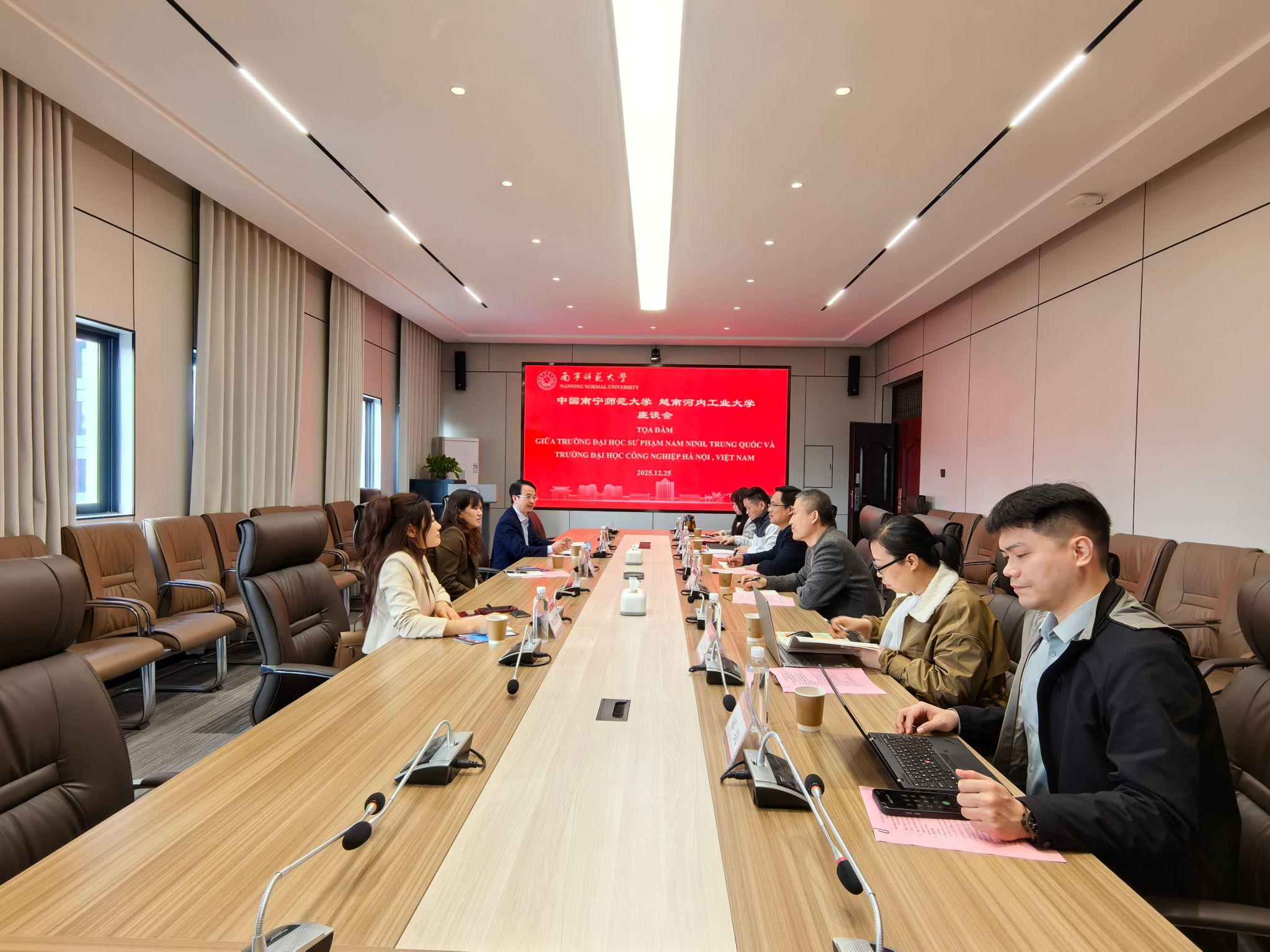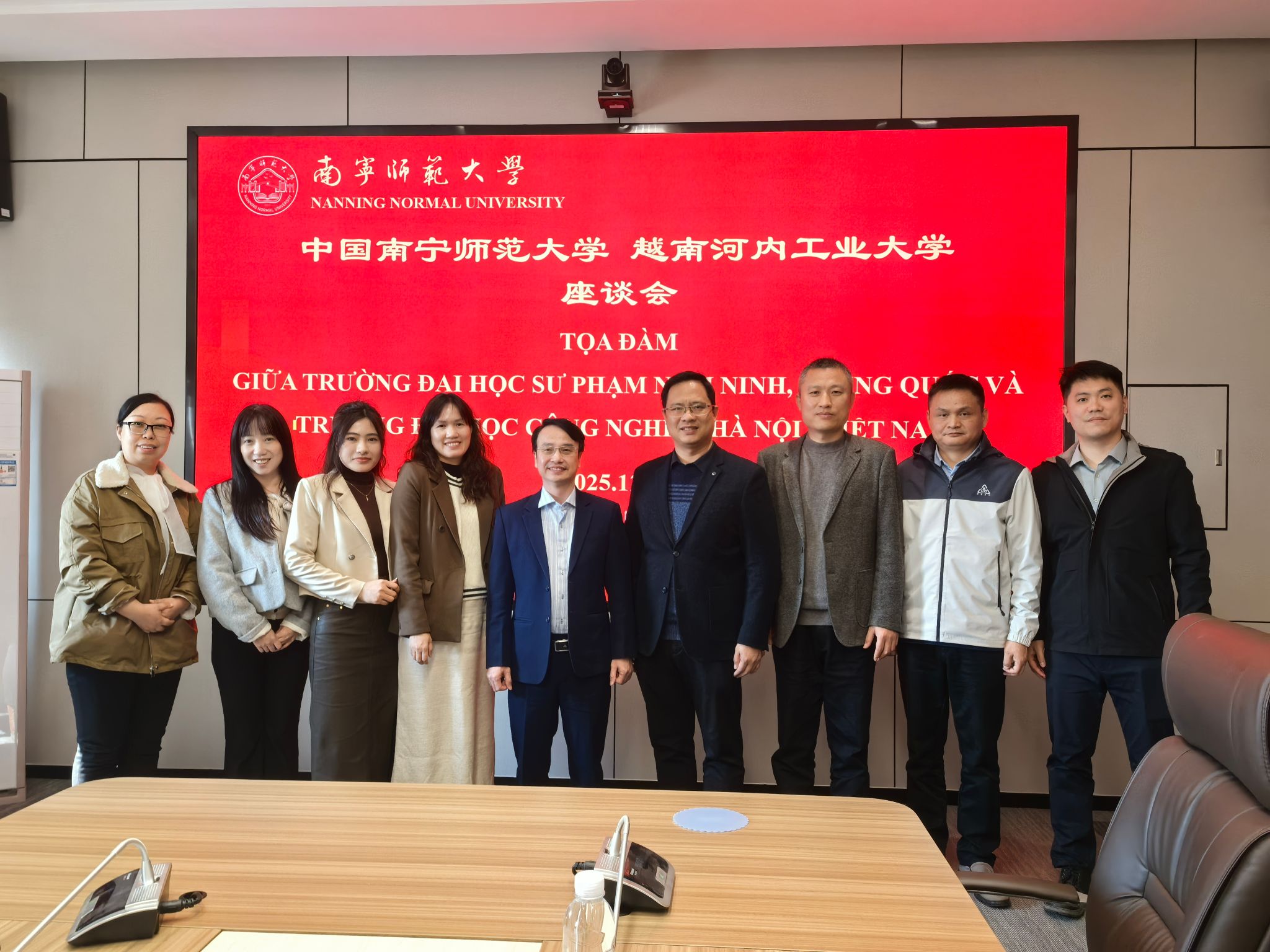 12月25日上午,越南河内工业大学合作发展部对外事务负责人杜氏青鸾、经济学院副院长武廷科一行3人到访物流管理与工程学院交流访问。我校国际交流合作处副处长、国际教育学院副院长陈传忠,物流管理与工程学院副院长刘新全、蔡宏果,院长助理李梅及相关教师,在武鸣校区地化楼C413室热情接待了代表团。