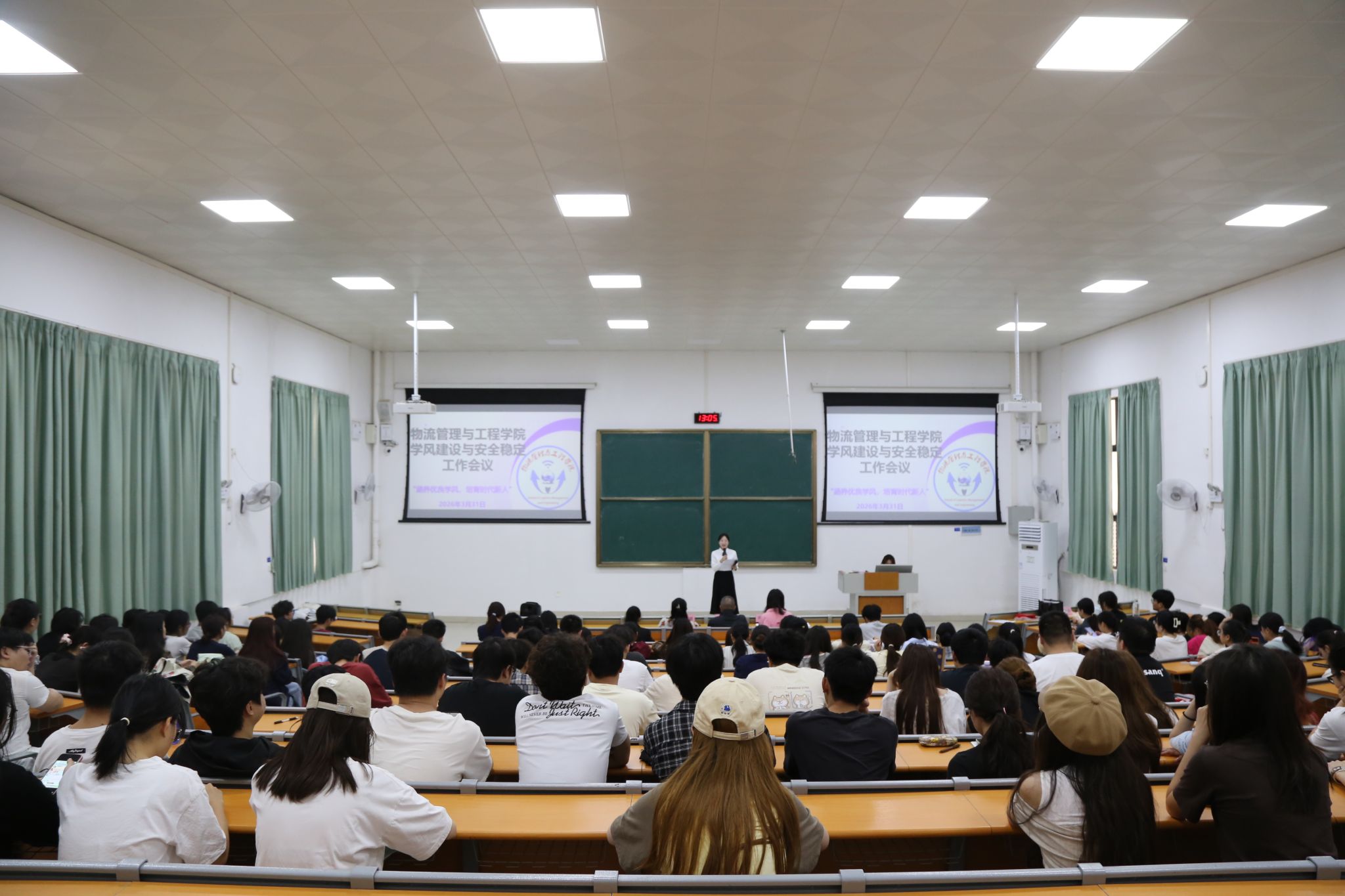 为进一步抓实学风建设、筑牢校园安全防线、助力学生成长成才,物流管理与工程学院于3月31日中午在武鸣校区地化楼B111教室召开学风建设与安全稳定工作会议。学院党委副书记黄宇、团委书记黄海嫚、辅导员周佳及全体学生干部参加会议,会议由覃洁婷同学主持。